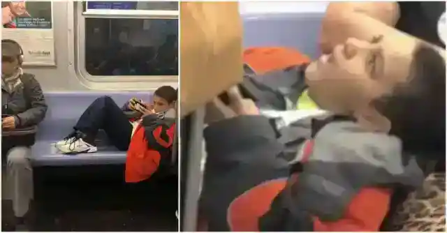 However, one boy thought that he was above those rules and laid on the bench, taking up three seats, preventing other passengers from sitting down. When one of the passengers saw this, he wasn’t having it . . .