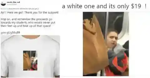 The shirt is a simple white T with a picture of Joe’s hilarious reaction to being sat on. It’s clear that the stranger and Joe will go down in subway folklore. Though many find the story comical, some people are not amused . . .