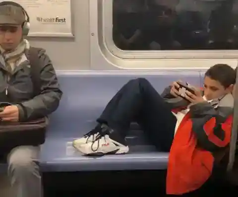 To give the others some space, he crouched his legs, still refusing to take his legs completely off of the bench, adding to the other passenger’s frustration. Then, one passenger, a hero in the midst, had enough, and decided to do something . . .